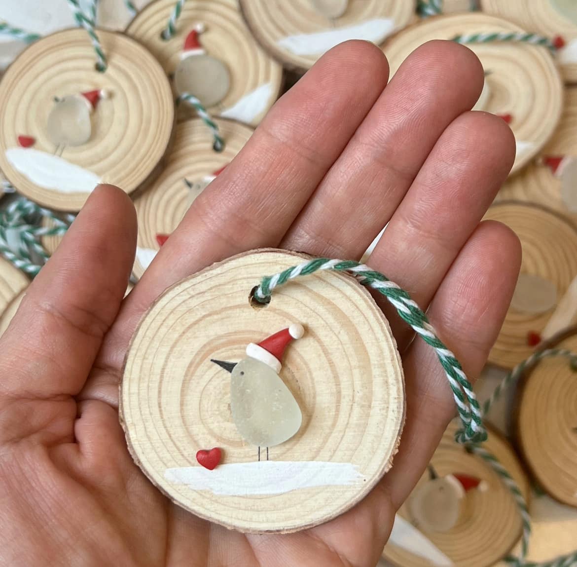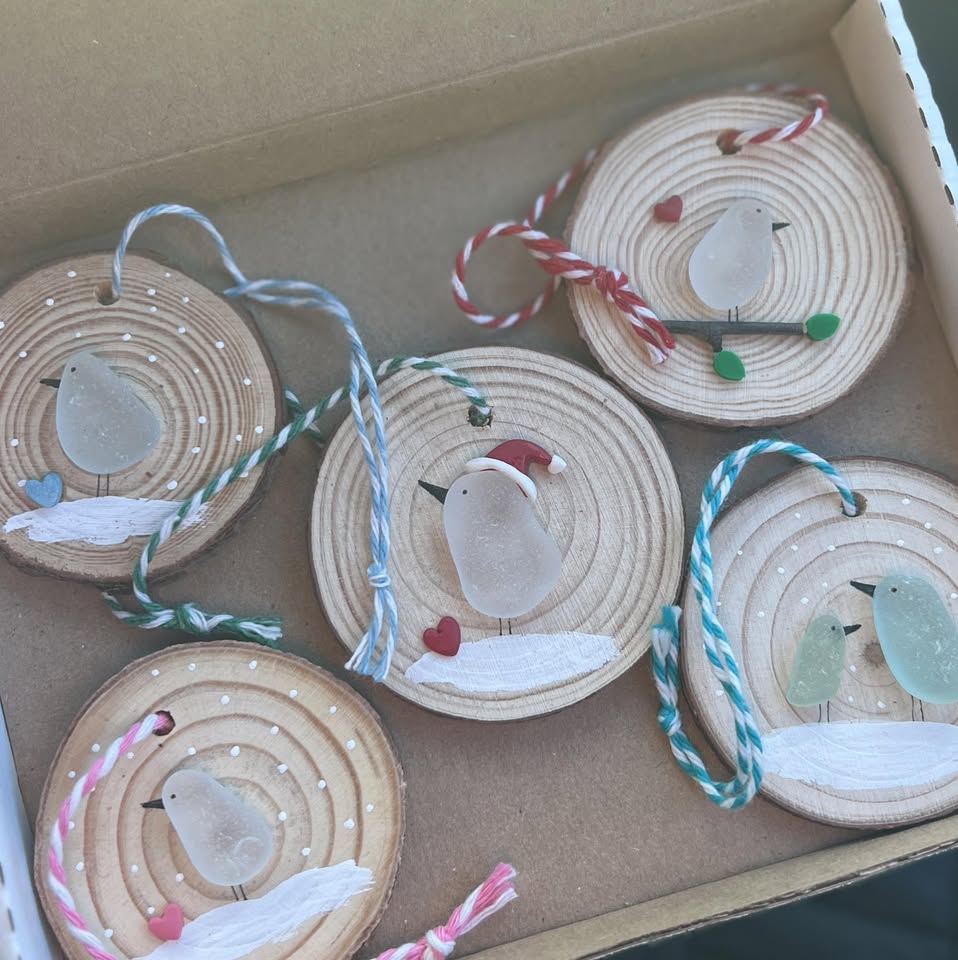I’ve been workin’ with sea glass for years, and these holiday ornaments? They’re my favorite to make. Each step—picking the perfect sea glass, matching it to the wood, painting those tiny details—feels like a little holiday prayer. And when they’re all done, nestled in a box, they’re ready to bring someone’s Christmas tree to life with sea-smooth charm and handmade warmth.